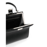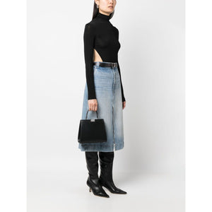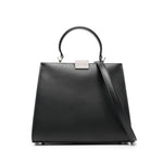 logo-engraved leather tote bag from ARMARIUM featuring black, calf leather, smooth grain, logo-engraved silver-tone hardware, single top handle, detachable shoulder strap, clasp fastening, main compartment and internal zip-fastening pocket. Anna small leather handbag Size and Fit - Width 9,06 in / 23 cm