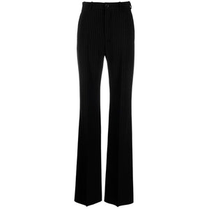 Nero, motivo gessato, modello a vita alta, passanti, chiusura frontale con bottoni e zip e taglio straight. Straight leg trousers Size and Fit - This piece fits true to size. We recommend you get your regular size. Model is 1,75m / 5ft 8in wearing size 36 (FR)