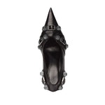 Nero, pelle di agnello, dettaglio con fibbia decorativa, design a punta, design senza aperture, soletta con logo e tacco alto. Le Cagole leather pumps Size and Fit - Heel 9 cm