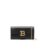 jet black lambskin smooth grain gold-tone logo plaque logo-engraved gold-tone hardware foldover top with press-stud fastening detachable chain-link shoulder strap main compartment internal logo stamp partitioned compartment internal zip-fastening pocket internal card slots leather lining gold-tone hardware B-Buzz leather wallet on chain Size and Fit - Width 3,94 in / 10 cm Height 4,33 in / 11 cm Depth 0,79 in / 2 cm Strap 35,43 in / 90 cm