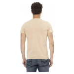 Elevate your everyday style with the sophisticated simplicity of a Trussardi Action V-neck T-shirt. This beige tee is a testament to understated elegance, basking in the suave Trussardi Action brand heritage. Adorned with a sleek front print, it crafts a bold statement while nestling softly against your skin in a luxurious blend of cotton and viscose. Exuding casual charm, this piece is a must-have for those who covet fashion that speaks in subtle volumes.