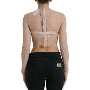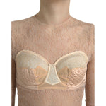 Dolce & Gabbana Beige Nylon Floral Lace Bustier Cropped Top