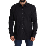 Absolutely stunning, 100% Authentic, brand new with tags Dolce & Gabbana SICILIA black dress shirt made of fine soft cotton stretch. Features a spread collar and one-button barrel cuffs.