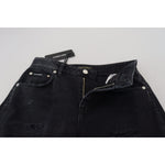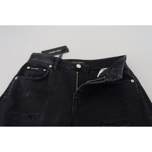 Dolce & Gabbana Black Cotton Tattered High Waist Denim Jeans
