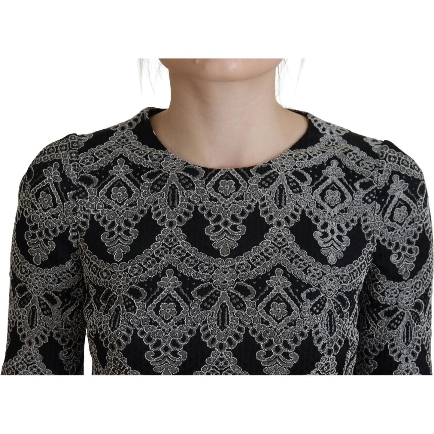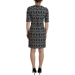 Dolce & Gabbana Black Gray Jacquard Sheath Bodycon Dress
