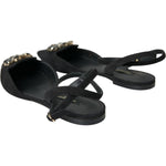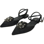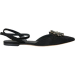 Dolce & Gabbana Black Leather Crystal Slingback Sandals Shoes