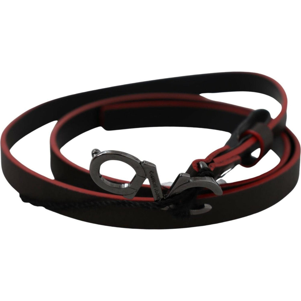 Costume National Black Maroon Skinny Leather Buckle Waist Belt
