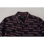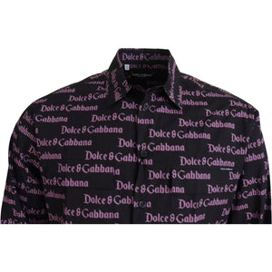 Dolce & Gabbana Black Purple Logo Slim Dress Formal Shirt
