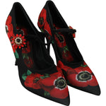Dolce & Gabbana Black Red Floral Mary Janes Pumps Shoes