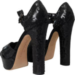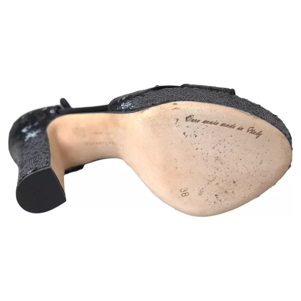 Dolce & Gabbana Black Sequin Ankle Strap Heels Sandals Shoes