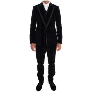 Dolce & Gabbana Black Velvet Slim Double Breasted Suit