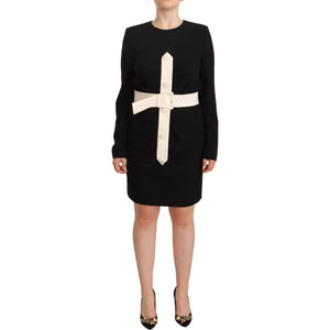 Givenchy Black Wool Long Sleeves Belted Mini Sheath Dress