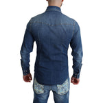 Dolce & Gabbana Blue Cotton Stretch Long Sleeves Denim Shirt