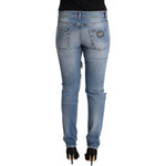 Dolce & Gabbana Blue Distressed Cotton Denim Skinny Jeans