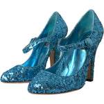Dolce & Gabbana Blue Sequin Mary Jane Pumps High Heels Shoes