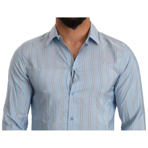 Dolce & Gabbana Blue Striped Silk Formal Dress MARTINI Shirt