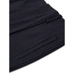 High waist, front fastening with covered hooks, two side pockets, one back pocket closed with covered zip, central seam on the leg, on the bottom openable button.