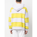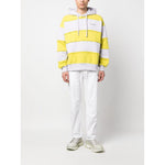 striped drawstring hoodie from Botter featuring citron yellow, white, organic cotton, stripe print, logo print at the chest, drawstring hood, long sleeves and ribbed cuffs and hem. Conscious: This product contains organic cotton where the cultivation and manufacturing process restricts the use of chemicals, eliminates pesticides or artificial fertilisers and incorporates methods that respect biodiversity, improve soil quality, and reduce water consumption.. Learn more about what makes a product Conscious on our Conscious Criteria page. Organic cotton hoodie Size and Fit - This piece fits true to size. We recommend you get your regular size. Model is 1,84m / 6ft 1in wearing size M