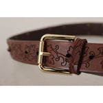 Dolce & Gabbana Brown Leather Floral Studded Metal Buckle Belt