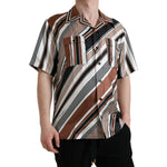 Dolce & Gabbana Brown White Silk Striped Short Sleeve Shirt