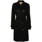black gabardine weave logo-engraved buttons belt loops epaulettes D-ring findings storm flap notched lapels long sleeves belted cuffs buttoned central rear vent two front welt pockets double-breasted button fastening detachable and adjustable waist belt straight hem house check pattern lining Chelsea cotton trench coat Size and Fit - This piece fits true to size. We recommend you get your regular size. Model is 1,75m / 5ft 8in wearing size 8 (UK)