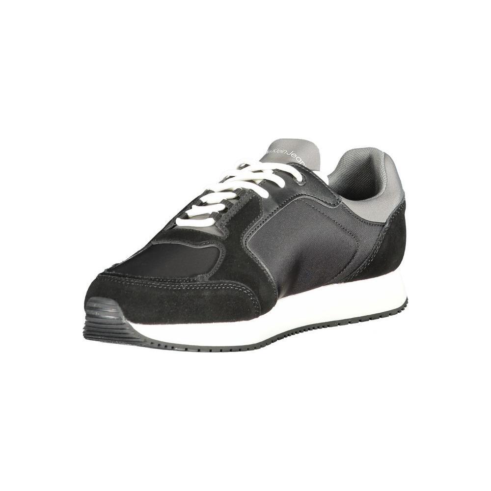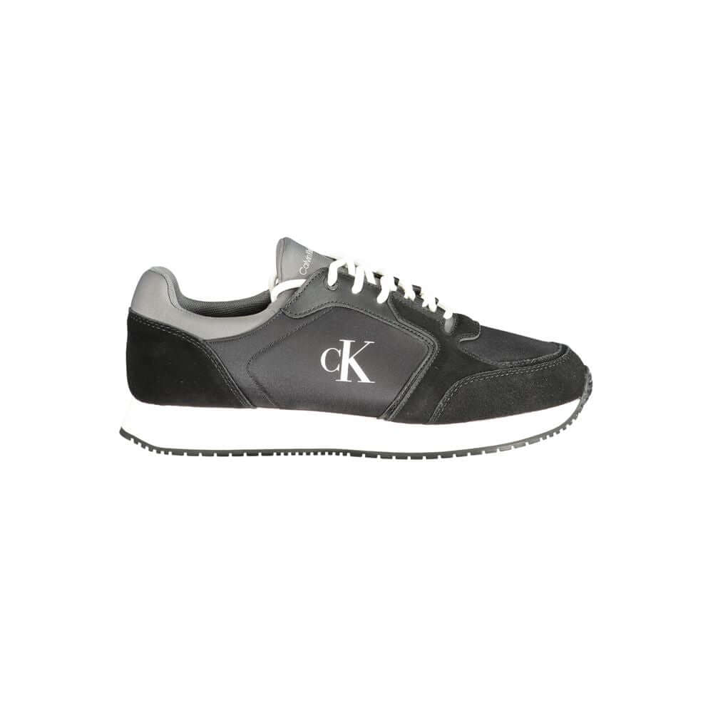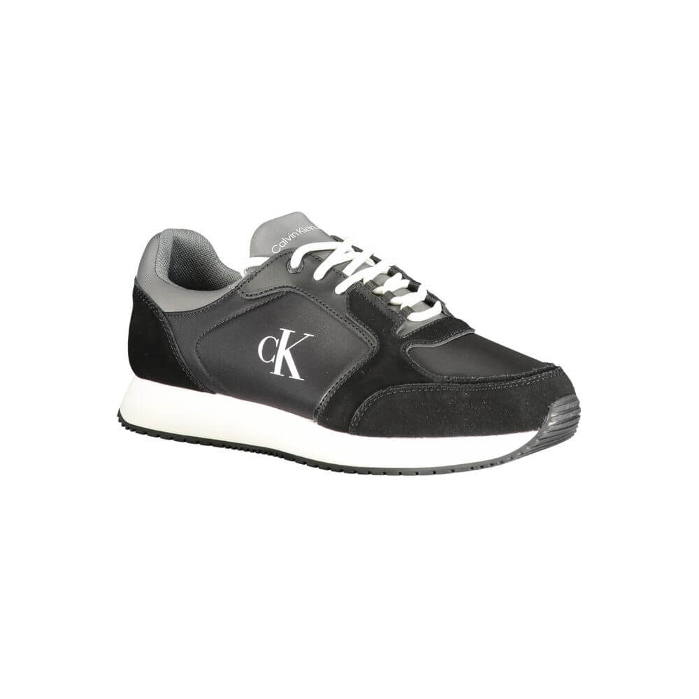 Elevate your sneaker game with the Calvin Klein edge. Crafted for the modern man, these dynamic sports shoes blend sleek black sophistication with bold contrasting details in grey and white that demand attention. Designed for both style and comfort, they feature a removable insole for a customizable fit. Etched with the iconic logo, they speak volumes of fashion with every step.