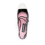 Papaya 65mm two-tone pumps from Carel Paris featuring white/black, calf leather, branded leather insole, contrasting toecap, square toe, buckle fastening and mid block heel. Papaya patent leather slingback pumps Size and Fit - Heel 2,6 in / 6,5 cm