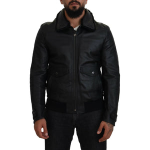 Dolce & Gabbana Black Lamb Leather Collared Men Coat Jacket