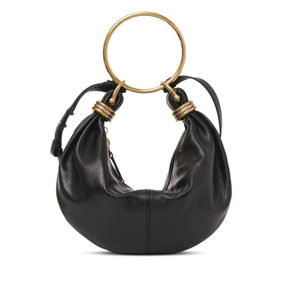 black calf leather top zip fastening ring handle detachable shoulder strap gold-tone hardware main compartment Bracelet small leather hobo bag Size and Fit - Width 12,6 in / 32 cm Height 5,51 in / 14 cm Depth 3,94 in / 10 cm Handle 7,87 in / 20 cm Strap 23,62 in / 60 cm