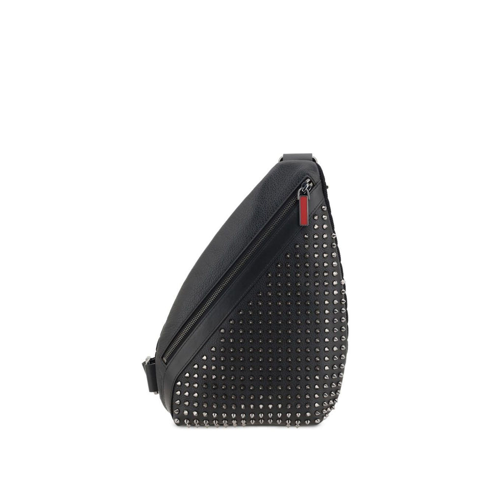 black front zip fastening adjustable shoulder strap spike stud detailing Funky Slingback leather backpack