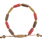 White CZ Diamonds, Red Coral, Brown Tiger Eye Flat Beads