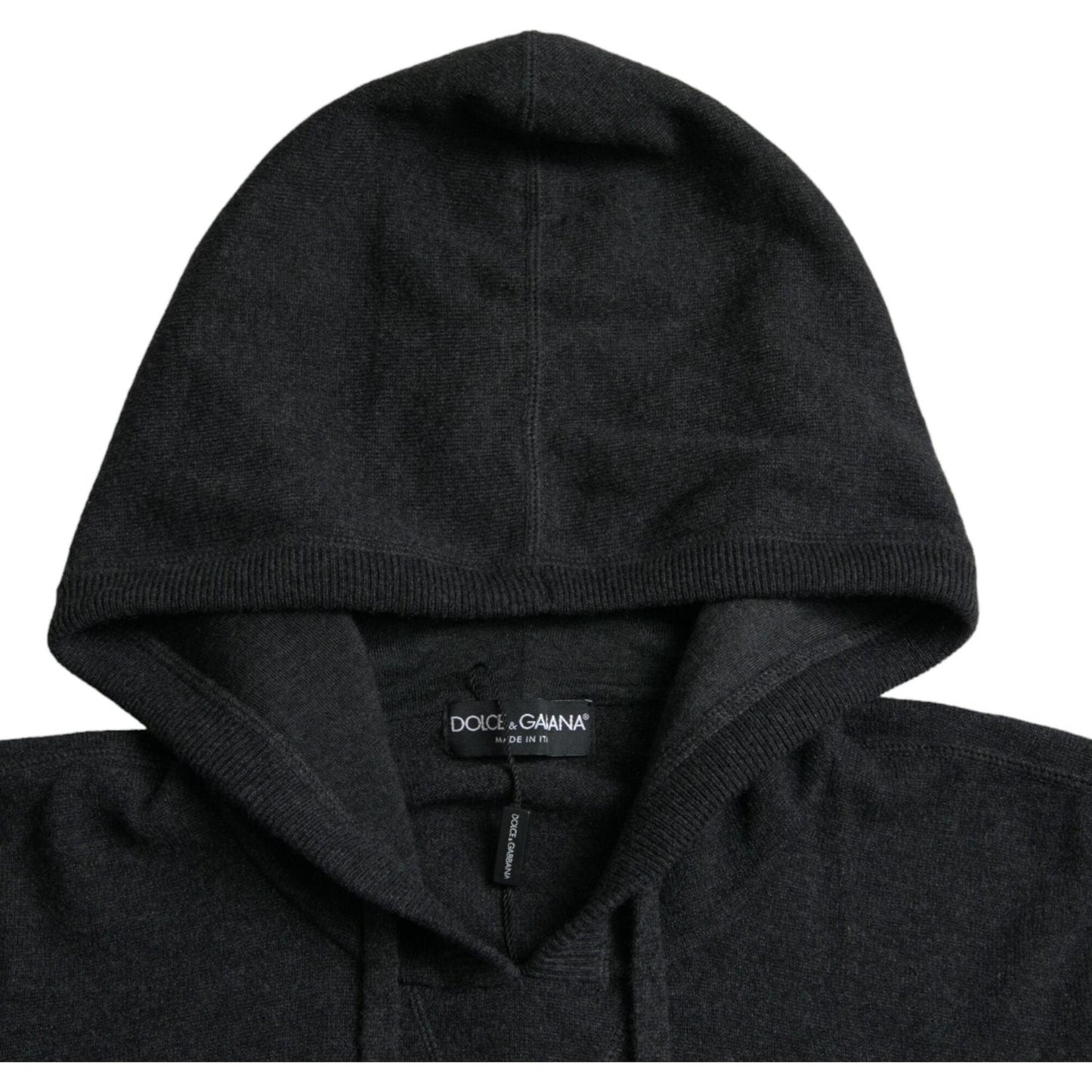 Dolce & Gabbana Dark Gray Cashmere Hooded Pullover Sweater
