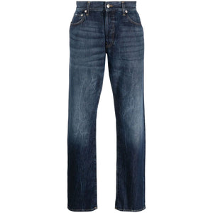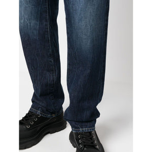 straight-leg stonewashed jeans from Department 5 featuring indigo blue, cotton, stonewashed, whiskering effect, classic five pockets, belt loops, front button and zip fastening, straight leg and straight hem. Straight leg denim jeans Size and Fit - This piece fits true to size. We recommend you get your regular size. Model is 1,84m / 6ft 1in wearing size 32 (WAIST CM)