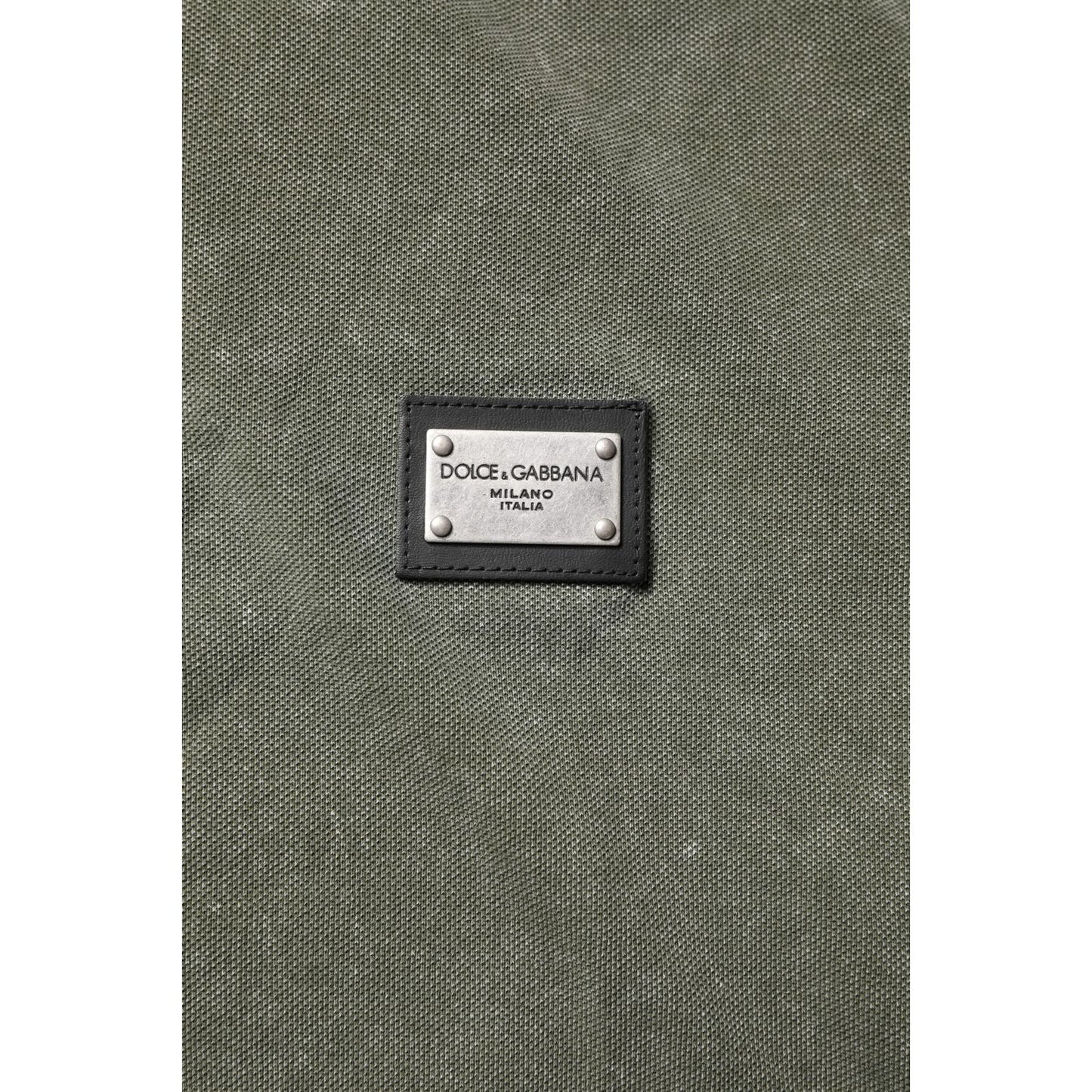 Dolce & Gabbana Army Green Logo Plaque Cotton Polo Shirt T-shirt