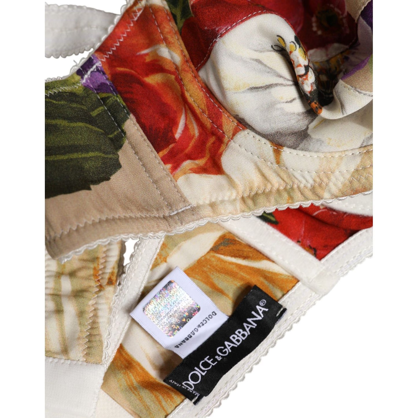 Dolce & Gabbana Beige Floral Balconcino Underwired Bra Underwear
