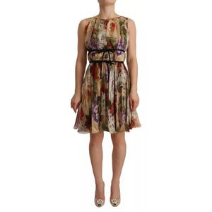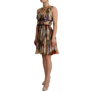 Dolce & Gabbana Beige Floral Sleeveless Round Neck Mini Dress