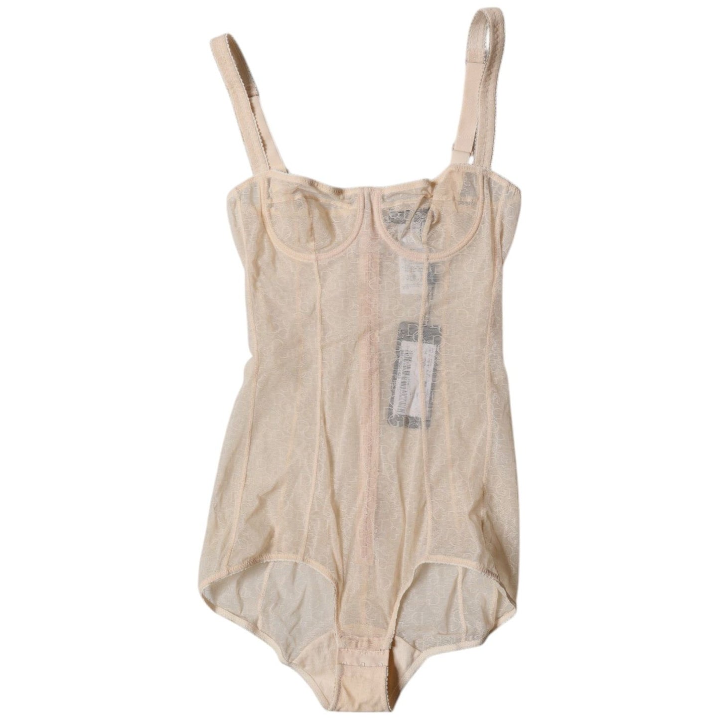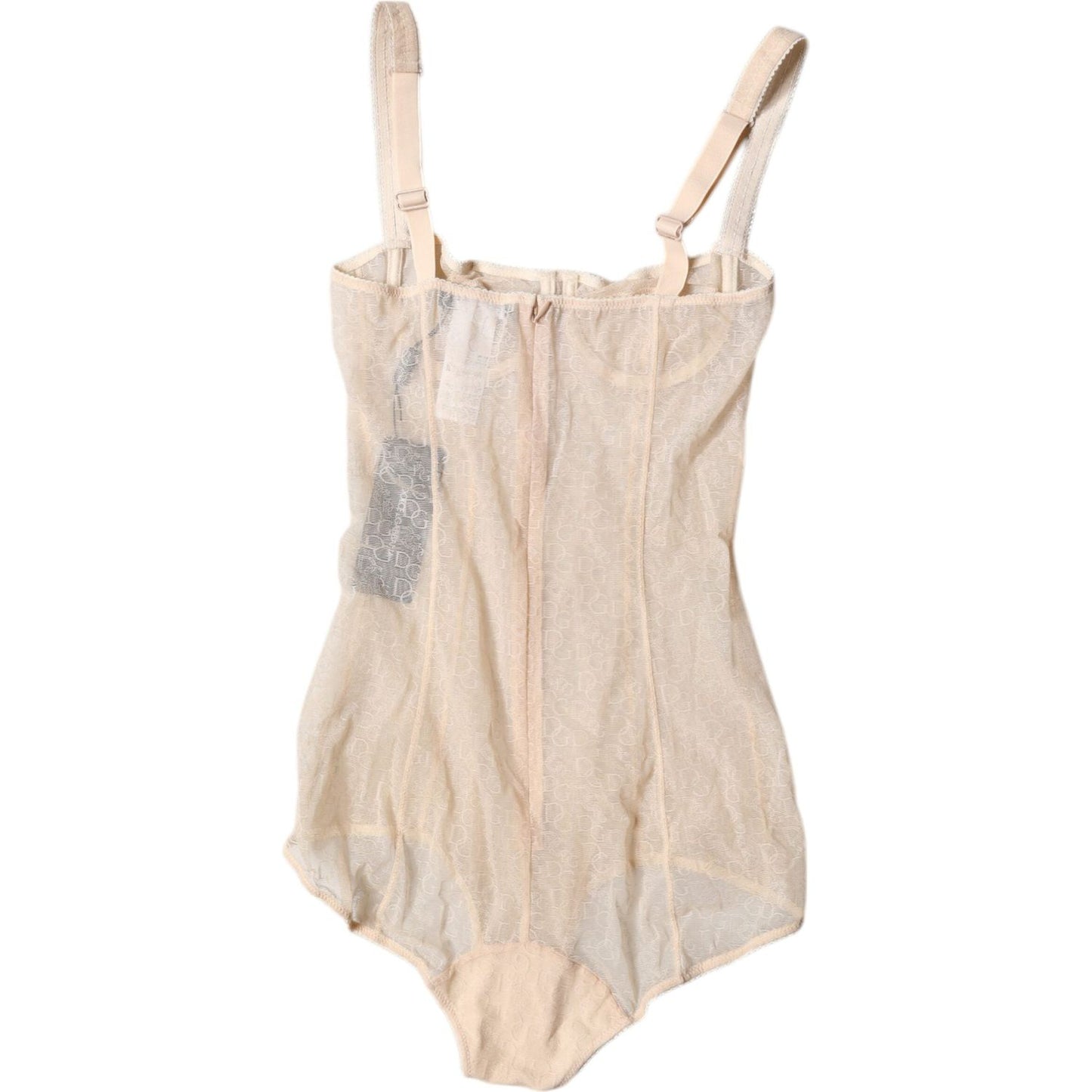 Dolce & Gabbana Beige Tulle Balconette Bra Bodysuit Underwear