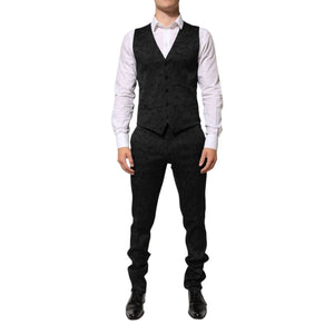 Dolce & Gabbana Black 3 Piece Brocade Jacquard Suit MARTINI