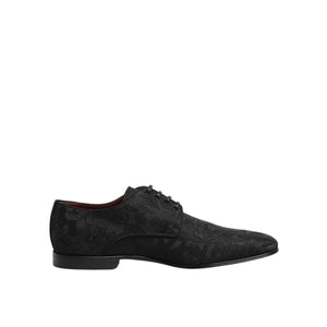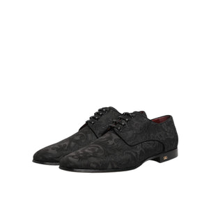 Dolce & Gabbana Black Brocade Lace Up Derby Men Dress Shoes