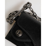 Dolce & Gabbana Black Cavallo Leather Wallet Chain Snap Bifold Card Holder