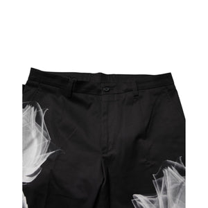 Dolce & Gabbana Black Cotton Floral Skinny Dress Pants