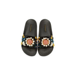 Dazzle in the epitome of summertime luxury with these Dolce & Gabbana rubber slippers. Adorned with an exotic iguana print and crafted from the finest calfskin, they boast intricate papier-mâché embellishments, delicate flowers, and vibrant jewels, ensuring every step you take is a statement. Perfect for fashion-forward trendsetters who love to stand out. Add a splash of bold sophistication to your wardrobe with these Italian masterpieces.