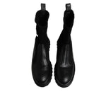 Gorgeous preowned, 100% Authentic Dolce & Gabbana brand logo, solid color, leather backing, round toeline, square heel, rubber heel, lug sole ankle boots shoes