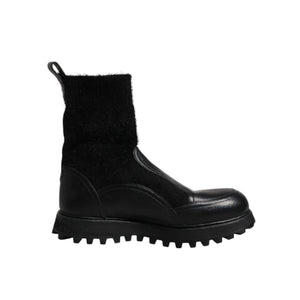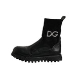 Dolce & Gabbana Black DG Logo Horse Sock Ankle Boots Shoes
