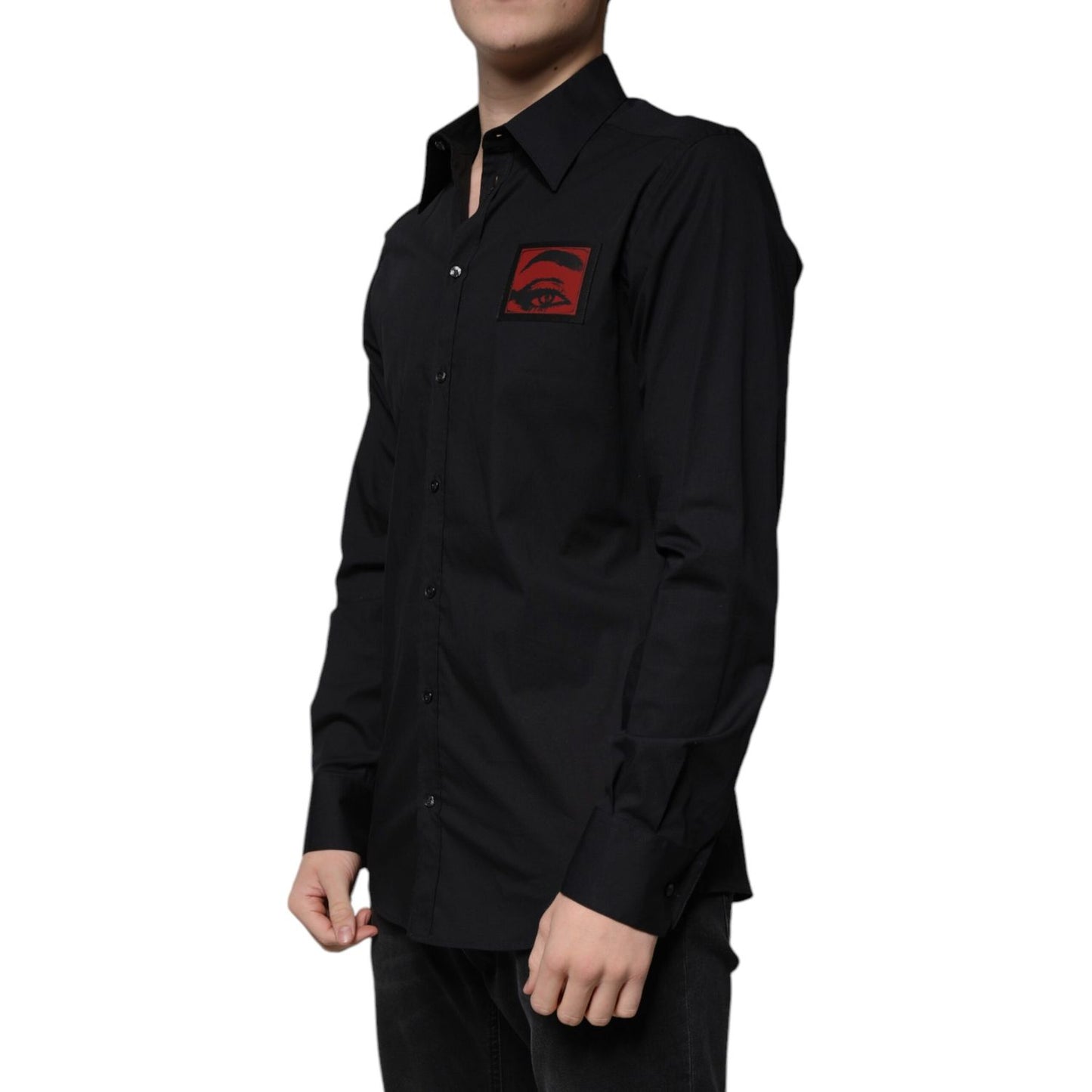 Dolce & Gabbana Black Eye Patch Long Sleeve GOLD Dress Shirt