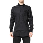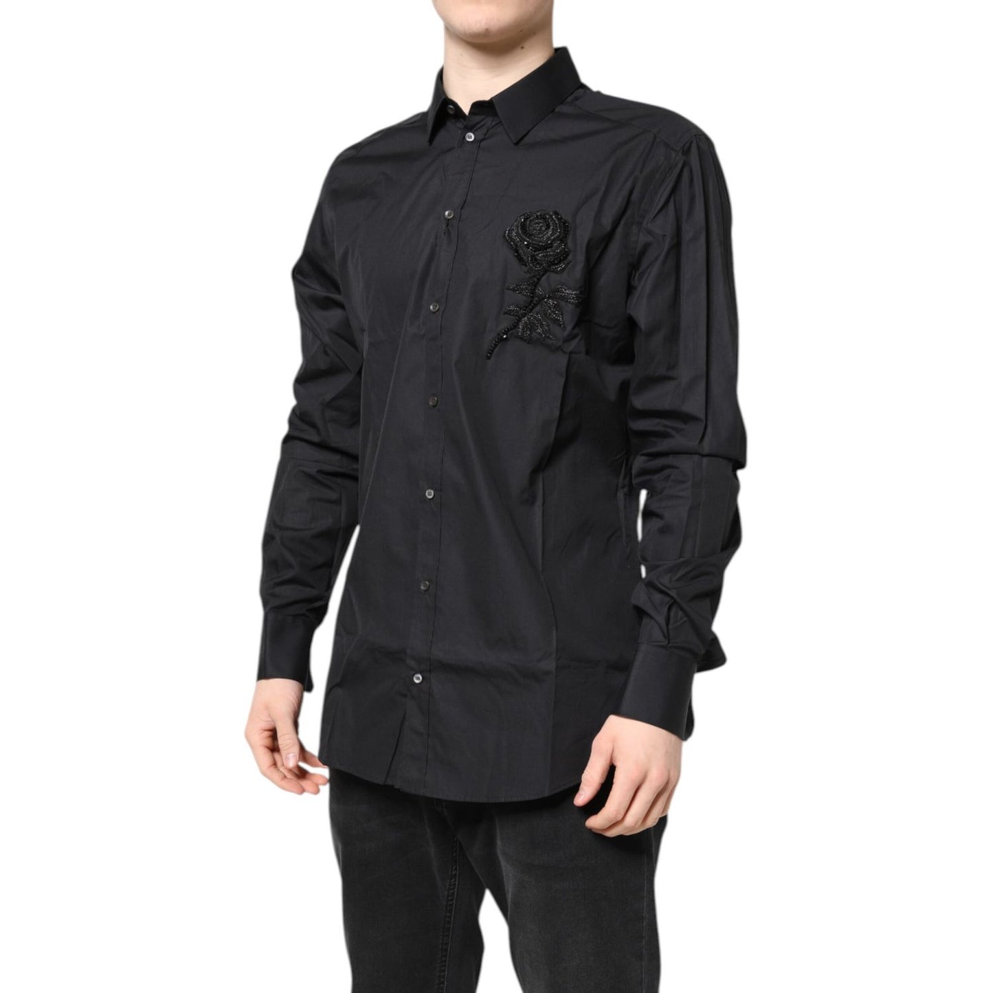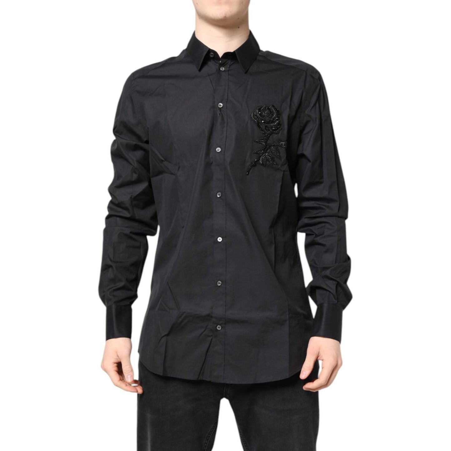 Dolce & Gabbana Black Floral Gold Cotton Dress Formal Shirt