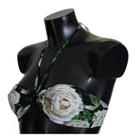 Dolce & Gabbana Black Floral Halter Beachwear Swimwear Bikini Top