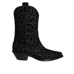 Dolce & Gabbana Black Gray Leopard Cowboy Boots Shoes