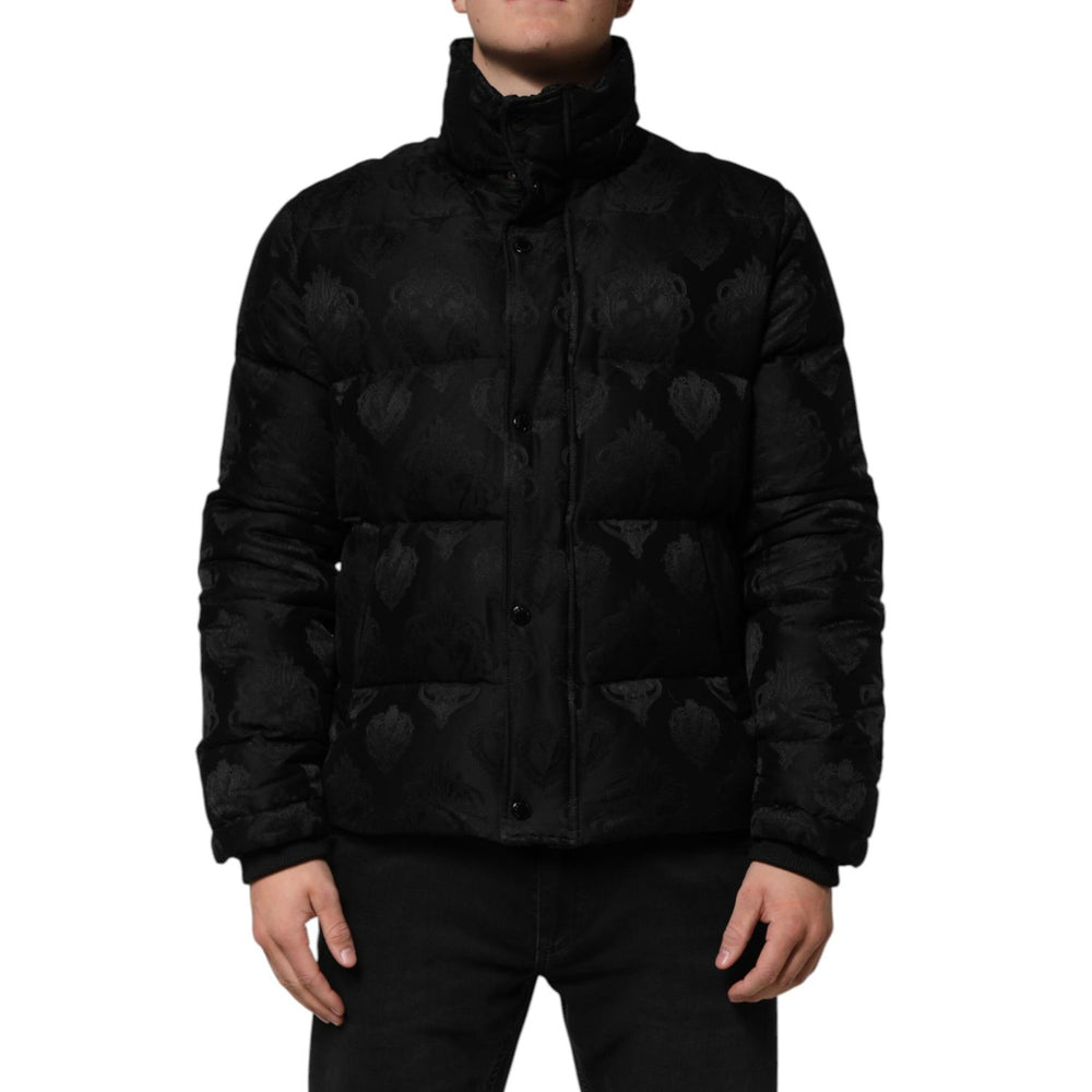 Dolce & Gabbana Black Jacquard Quilted Puffer Bomber Jacket