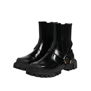 Dolce & Gabbana Black Leather Chelsea Men Short Boots Shoes